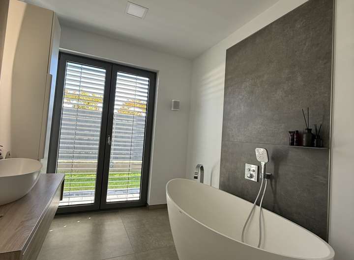 - bodentiefe, 3-fach verglaste Fenster mit elektrischen Raffstores im ganzen Haus