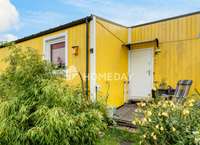 Inmitten eines gepflegten Campingplatzes im Grünen erwartet Sie dieser Bungalow, der 2021 errichtet wurde und mit seiner sonnengelben Holzfassade sofort ins Auge fällt.