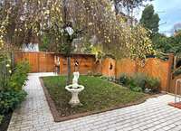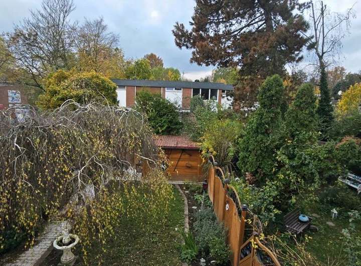 Der gepflegte Garten bildet eine grüne Oase mitten in der Stadt – ideal für Familien und Erholungssuchende.