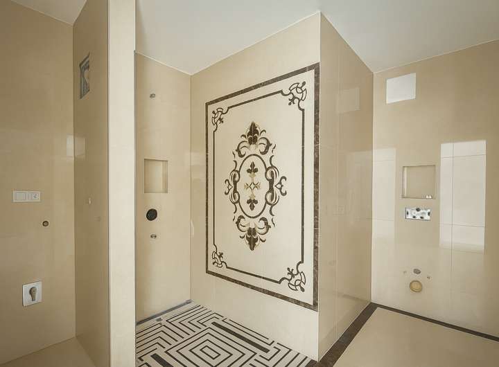 Die ebenerdigen Designerbäder sind mit bodengleichen Duschen, exklusiver Fliesengestaltung und hochwertigen Sanitärobjekten ausgestattet. Der Waschmaschinenanschluss befindet sich – je nach Wohnung – komfortabel in einem separaten Haushaltswirtschaftsraum oder im dafür vorgesehenen Bereich im Bad.