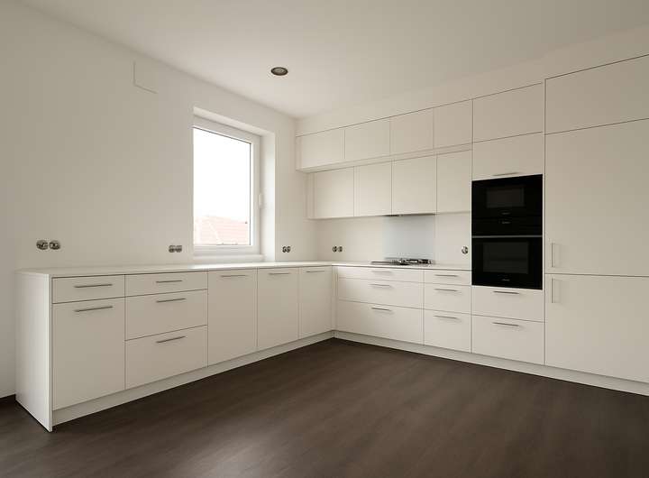 Jede Wohnung ist mit einer hochwertigen Einbauküche inklusive moderner Siemens-Markengeräte ausgestattet. Hochwertiger Vinylboden in einem modernen, dunklen Holzton sorgt in allen Wohnräumen für ein elegantes und wohnliches Ambiente.
