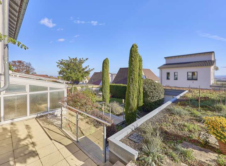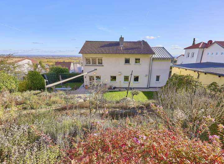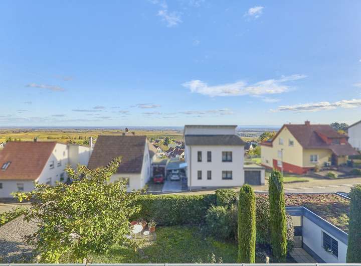 Zum Verkauf steht ein Einfamilienhaus in begehrter Wohnlage von Frankweiler mit beeindruckendem Weitblick über die Rheinebene. Das im Jahr 1998 kernsanierte Anwesen besticht durch seine großzügige Raumaufteilung, die durchdachte Architektur und die ruhige, erhöhte Lage mit wunderschöner Aussicht. Die Wohnfläche von ca. 203 m² verteilt sich auf drei Ebenen und ermöglicht vielfältige Nutzungsmöglichkeiten.