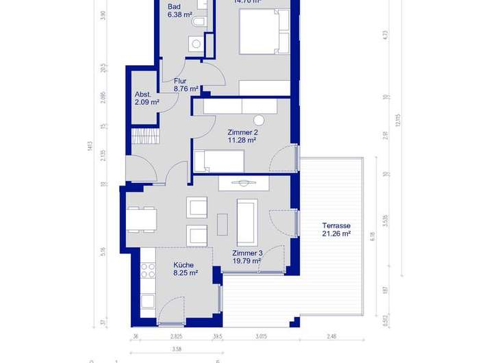 | Gesamtmiete | 1.665 € (zzgl. Heizkosten) |