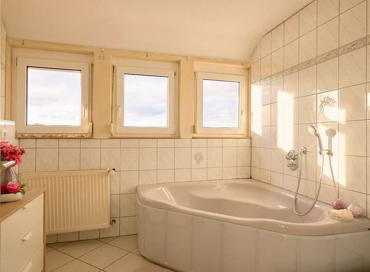 - Helles Tageslichtbad mit Badewanne