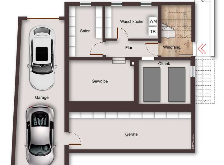 - Doppelgarage mit direktem Zugang ins Haus