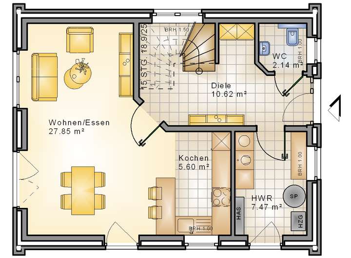 Nicht im Angebotspreis enthalten sind die Nebenkosten (Hausanschlüsse, Außenanlagen etc.)