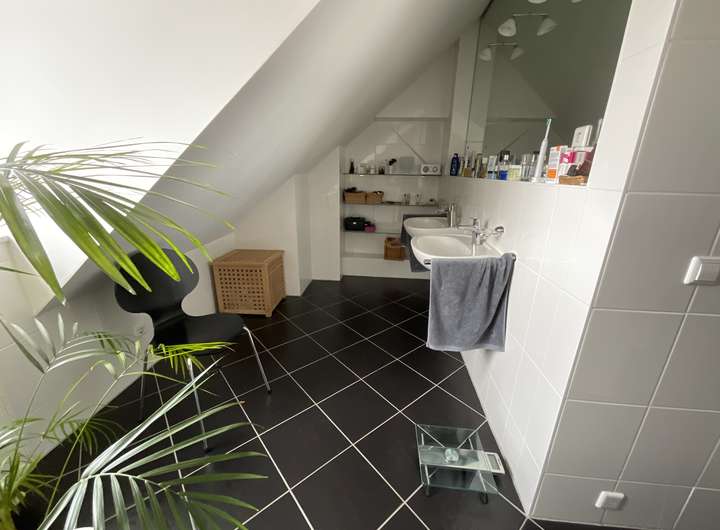 Von hier aus führt auch noch mal eine Treppe ins Dachgeschoss, das momentan als Ankleidezimmer genutzt wird. Es hat eine Fläche von circa achteinhalb Quadratmeter.