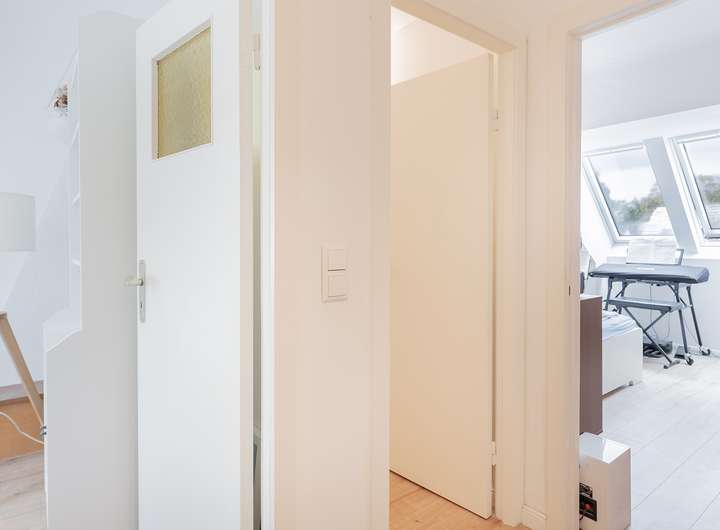 Besonderes Highlight des Hauses ist das nachträglich ausgebaute Dachgeschoss, welches sich in zwei weitere vielseitig zu nutzende Studiozimmer und ein weiteres Gäste-WC aufteilt.