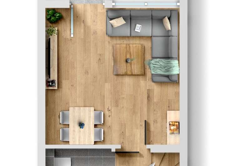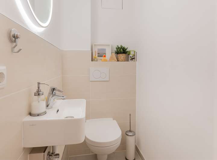 Im Erdgeschoss befinden sich des Weiteren noch ein separates, modernes Gäste-WC (innen liegend).