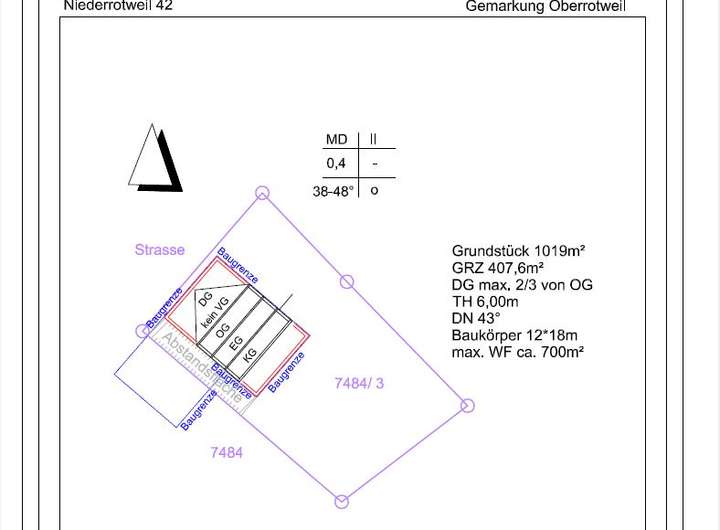 Das Grundstück ist voll erschlossen und gemäß Bebauungsplan wie folgt bebaubar: