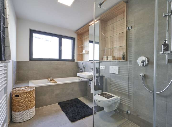 Im Obergeschoss befinden sich drei gut geschnittene Schlafzimmer sowie das moderne Badezimmer, ausgestattet mit Wanne, bodengleicher Dusche, Waschtisch, WC und Handtuchheizkörper. Das Dachgeschoss beeindruckt mit einer offenen Galerie, die vielfältige Nutzungsmöglichkeiten z.B. als Homeoffice bietet.