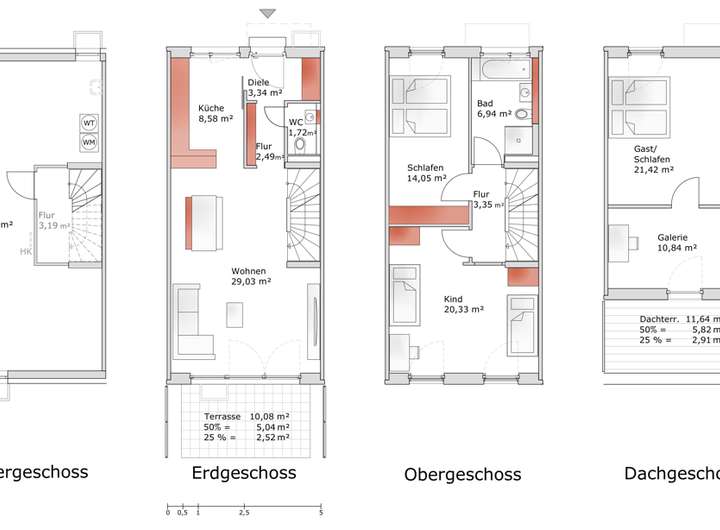 Auf rund ca. 133 m² Wohnfläche verteilt auf 5 Zimmer (inkl. Galerie) bietet das Haus ideale Voraussetzungen für Familien oder Paare, die neben komfortablem Wohnen auch Platz für ein Homeoffice benötigen.