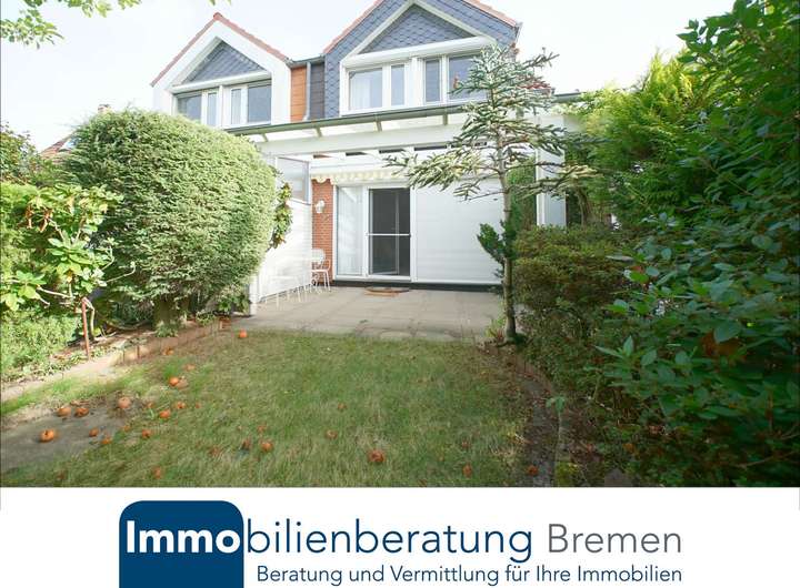 Diese gepflegte Doppelhaushälfte aus dem Jahr 1993 wurde in solider Massivbauweise errichtet und steht auf einem 193 m2 großen Grundstück in ruhiger Wohnlage nahe der Friedhofstraße in Bremen. Im Erdgeschoss er- wartet Sie ein großzügiger Wohnbereich, der dank seines durchdachten Zuschnitts und bodentiefer Fenster besonders hell und einladend wirkt. Ein voll funktionsfähiger Kachelofen sorgt an kühlen Tagen für wohlige Wärme und eine gemütliche Atmosphäre. Von hier aus gelangen Sie direkt auf die überdachte Terrasse, die mit Glasdach und Markise ausgestattet ist und ideal für entspannte Stunden im Freien genutzt werden kann. Ebenfalls im Erdgeschoss befinden sich ein Gäste-WC, eine funktional geschnittene Küche sowie zwei praktische Abstellräume, die zusätzlichen Stauraum bieten. Das Obergeschoss umfasst zwei gemütliche Schlafzimmer, die sich perfekt als Rückzugsorte für Familienmitglieder oder Gäste eignen. Das helle Bade- zimmer ist mit einer Dusche und einer Badewanne ausgestattet und bietet damit zeitgemäßen Komfort. Ein weiterer Abstellraum schafft zusätzlichen Platz. Im Dach- geschoss befindet sich ein ca. 22 m2 großes Studio. Dieses wird aktuell nicht zur offiziellen Wohnfläche gezählt, eröffnet jedoch vielfältige Nutzungsmöglichkeiten – etwa als zusätzliches Schlafzimmer, Homeoffice oder Hobbyraum. Zum Objekt gehört außerdem eine robuste Garage, die einen sicheren und witterungsgeschützten Stellplatz bietet.