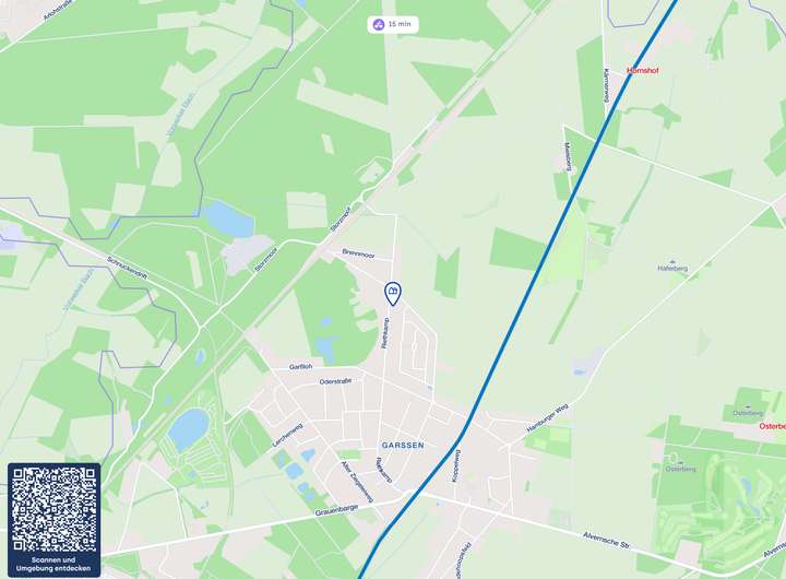 Die Immobilie befindet sich in der charmanten Stadtrandlage von Celle-Garßen, einer ruhigen und familienfreundlichen Umgebung. Die Adresse bietet eine hervorragende Anbindung an den öffentlichen Nahverkehr, mit der nächsten Bushaltestelle nur etwa 15 Meter entfernt. Für Autofahrer ist die Bundesstraße in wenigen Minuten erreichbar, was die Lage ideal für Pendler macht. Der nächste Flughafen ist etwa 45 Kilometer entfernt und bietet eine gute Anbindung für Reisen.