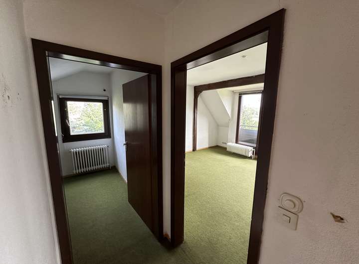 Im Obergeschoss befinden sich drei weitere Zimmer – ideal als Kinderzimmer, Gästezimmer oder Homeoffice. Zwei der Zimmer sind mit Balkonen ausgestattet.