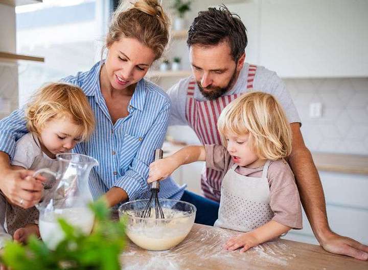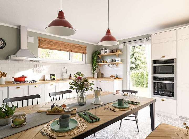 Der Mittelpunkt des Hauses ist das helle, großzügige Wohnzimmer mit gemütlichem Essbereich – perfekt für gemeinsame Abende mit der Familie. Die offene Küche liegt gleich daneben, ideal für gemeinsames Kochen, leckeres Sonntagsfrühstück oder ein schnelles Essen vor der Schule.