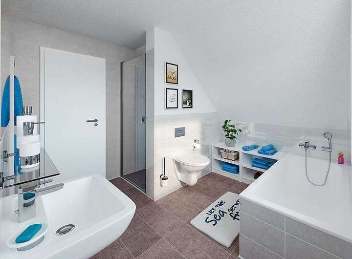 ein komplett ausgestattetes Bad und Gäste-WC (sofern vorhanden)