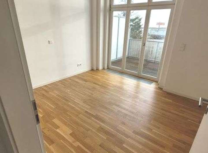 Über den Eingangsbereich gelangt man in den großen Wohnbereich mit integrierter Einbauküche. Das Schlafzimmer mit Balkon schließt sich an den Wohnbereich an. Der Hauswirtschaftsraum ist ebenfalls vom Wohnbereich zugänglich.