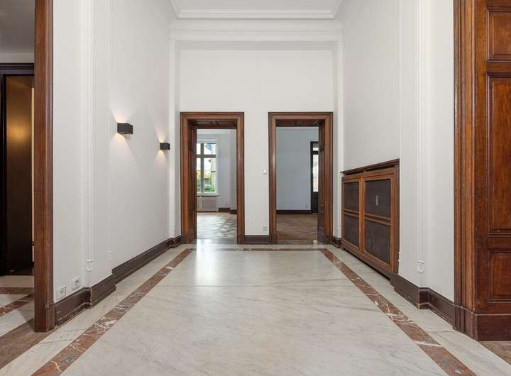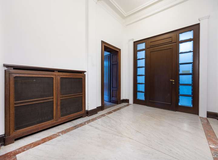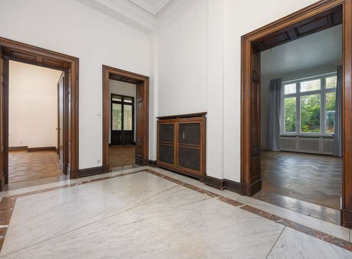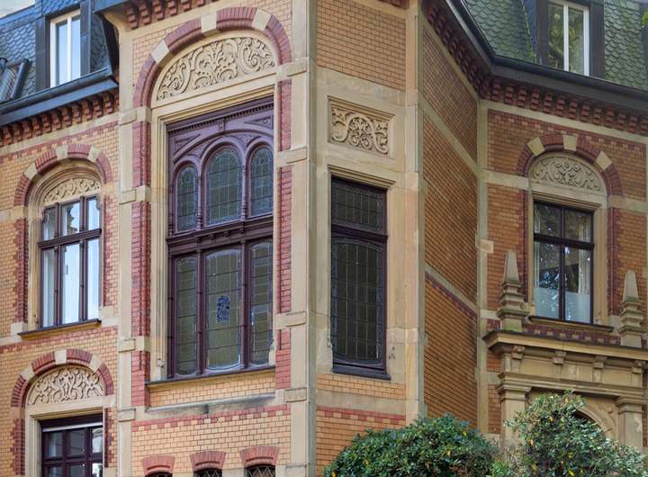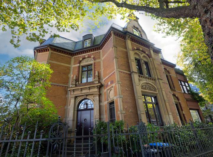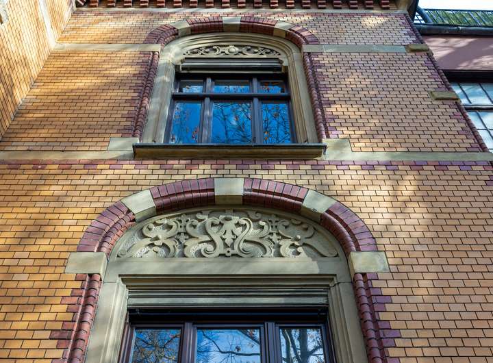 Der historische Charakter des Gebäudes spiegelt sich in vielen Details wider: Hohe Decken, aufwendige Stuckverzierungen und eine Fassade, die in Naturstein und Klinker gehalten ist. Der Eingangsbereich besticht durch eine Neo-Renaissance-Architektur mit Pfeilervorlagen und einem schmiedeeisernen Vordach.