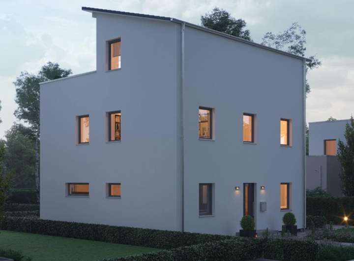 Dieses außergewöhnliche Zuhause zieht alle Blicke auf sich - durch markante Architektur, raffinierte Dachgestaltung und ein Raumkonzept voller Leichtigkeit und Weite. Die Kombination aus drei Pultdächern und einer großzügigen Dachterrasse 🏠 verleiht dem Haus eine unverwechselbare Silhouette und ein modernes, harmonisches Erscheinungsbild.