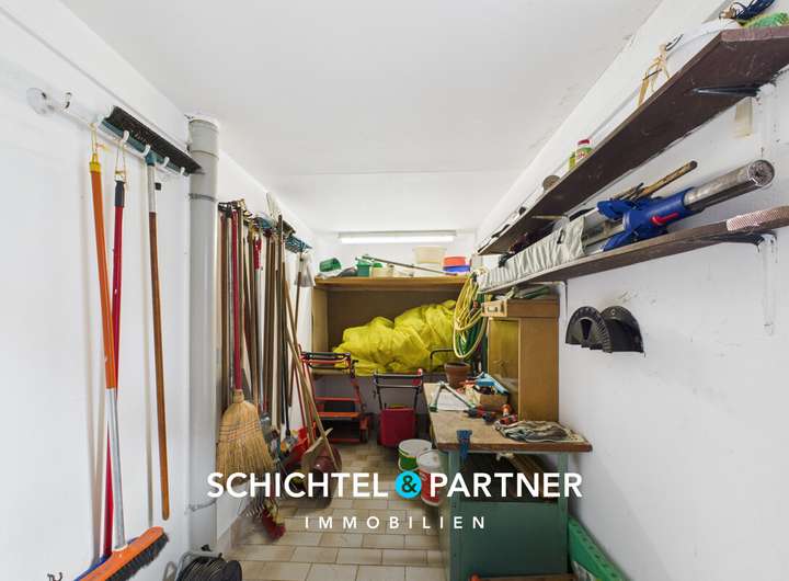 - Geräumige Garage mit elektrischem Tor und zusätzlicher Abstellfläche