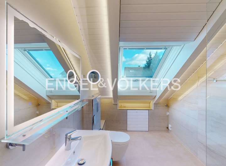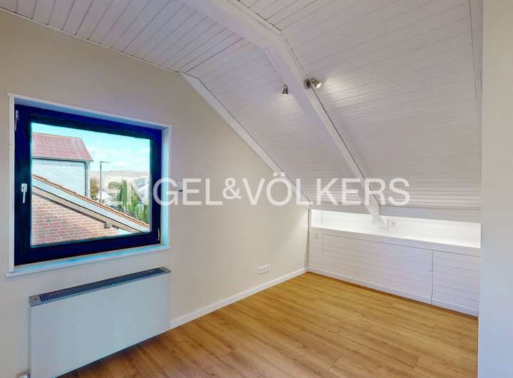 In Eltville-Rauenthal liegt, in einem gepflegten Zweifamilienhaus, diese schöne, ruhige 3-Zimmer Dachgeschosswohnung, die durch ihre Großzügigkeit und moderne Ausstattung begeistert. Die Wohnung wurde komplett modernisiert und präsentiert sich in einem erstklassigen Zustand. Ideal für Einzelpersonen oder Paare die Ruhe, Natur und stilvolles Wohnen schätzen, ohne auf eine gute Anbindung verzichten zu wollen. Der großzügige, offene Wohn- und Essbereich mit deckenhohen Fenstern ist das Herzstück der Wohnung. Hier genießen Sie ein lichtdurchflutetes Ambiente und den direkten Zugang auf die große, sonnige Loggia mit fantastischem Fernblick. Der perfekte Ort um den Tag mit einem Kaffee zu beginnen oder mit einem Glas Wein ausklingen zu lassen. Zwei weitere ruhige Räume bieten vielfältige Nutzungsmöglichkeiten, ob als Schlaf-, Arbeits- oder Gästezimmer. Das Tageslichtbad wurde hochwertig und modern ausgestattet und überzeugt mit klarer Linienführung und einer angenehmen Wohlfühlatmosphäre. Der Küchenbereich ist vorbereitet. Sie können dort eine Küche nach Ihren Wünschen einbauen lassen. Zur weiteren Ausstattung gehören die Beheizung über die energieeffiziente Luftwärmepumpe, die Stromversorgung über die eigene Photovoltaikanlage, die Warmwasseraufbereitung über eine Solarthermieanlage. Ein zukunftsweisendes Energiekonzept, das für niedrige Betriebskosten sorgt und die Umwelt schont. Die Lage ist ruhig und naturnah, gleichzeitig ist die Anbindung an die umliegenden Städte hervorragend. Ob Spaziergänge im Grünen oder der schnelle Weg in die Stadt, hier genießen Sie beides, Erholung und Komfort in idealer Balance. Diese Wohnung ist ein Ort zum Wohlfühlen, perfekt für Menschen, die Wert auf ein gutes Miteinander, Qualität, Ruhe und eine angenehme Wohnatmosphäre legen.