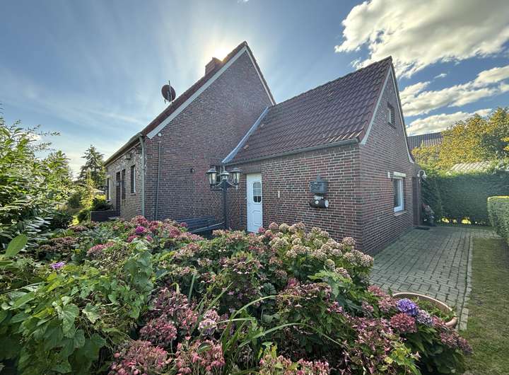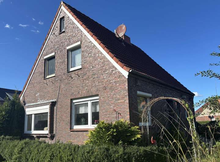 Im historischen Ortskern von Werdum bei Esens befindet sich dieses großzügige Siedlungshaus aus dem Baujahr 1960 auf einem weitläufigen Grundstück von über 1.000 m². Das Haus bietet eine klassische Aufteilung mit insgesamt zwei Wohnebenen: