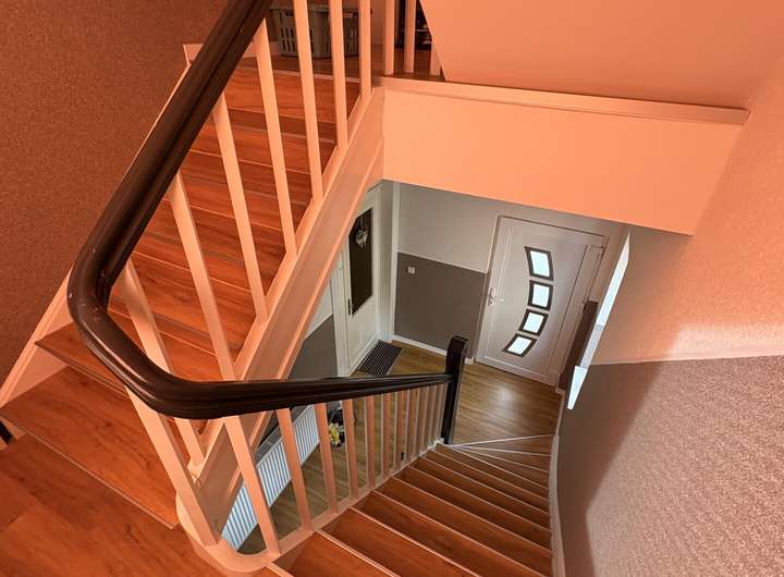 Besonders praktisch sind die zwei Abstellräume, die sich in den Zwischengeschossen befinden – ideal für Haushaltsgeräte, saisonale Dekoration oder Vorräte. Ebenfalls im ersten Obergeschoss liegen drei gut geschnittene Schlafzimmer sowie ein weiteres Badezimmer, das mit einer Badewanne ausgestattet ist und somit auch Familien mit Kindern höchsten Komfort bietet.
