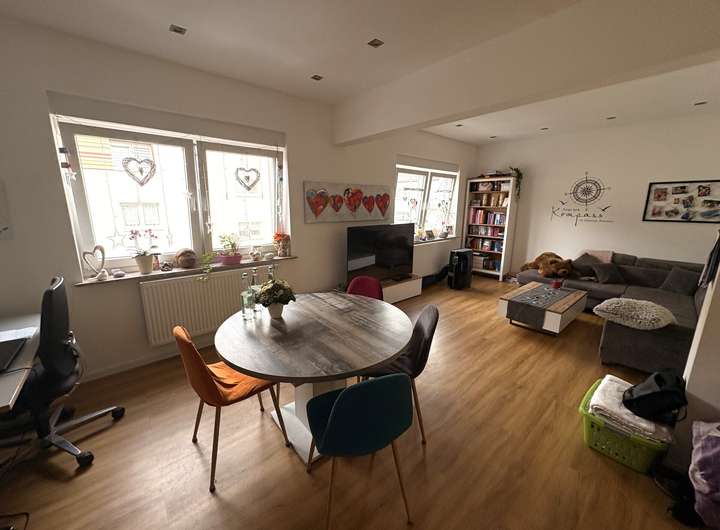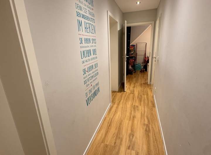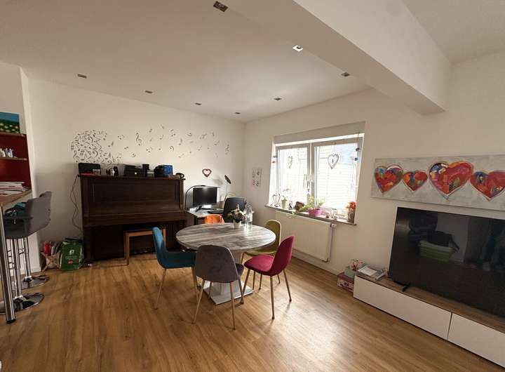 Die Immobilie verfügt über zwei Wohneinheiten. Die Wohnung im Erdgeschoss umfasst rund 50 QM und ist derzeit vermietet – eine solide Basis für regelmäßige Mieteinnahmen und eine interessante Option für Kapitalanleger. Die Hauptwohnung erstreckt sich über das erste Obergeschoss und das Dachgeschoss. Im ersten Obergeschoss erwartet Sie ein modernes Badezimmer mit Dusche, eine großzügige Küche mit angrenzendem Essbereich sowie ein heller und freundlicher Wohnbereich, der viel Raum für gemeinsame Stunden bietet.
