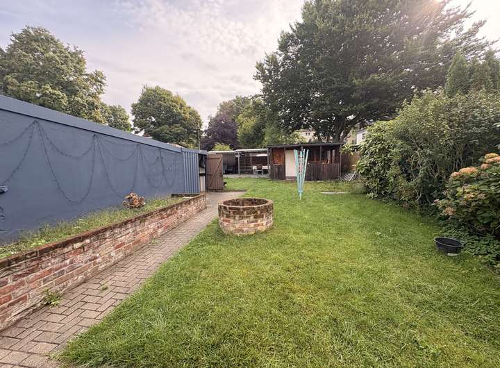 Das Grundstück rundet das Angebot ab: Eine Garage, zwei Außenstellplätze, ein zusätzlicher Abstellraum sowie eine große Hütte mit Terrasse bieten Platz für Fahrzeuge, Werkzeuge und gemütliche Sommerabende im Freien.