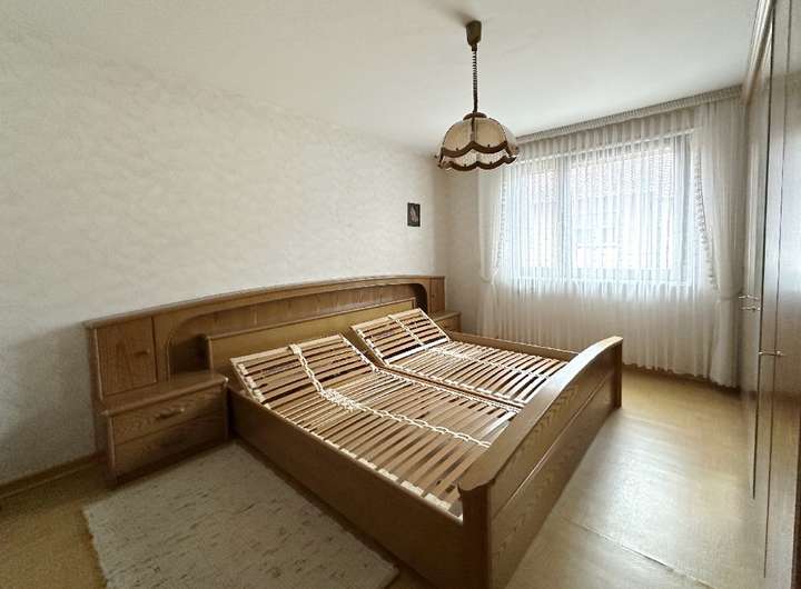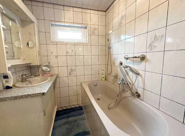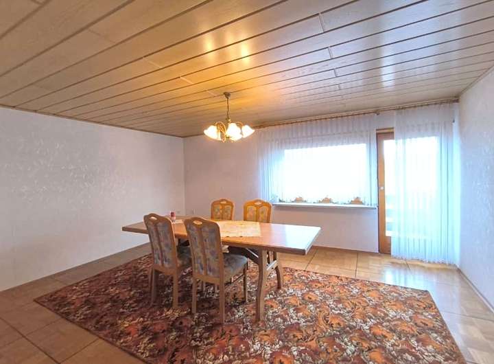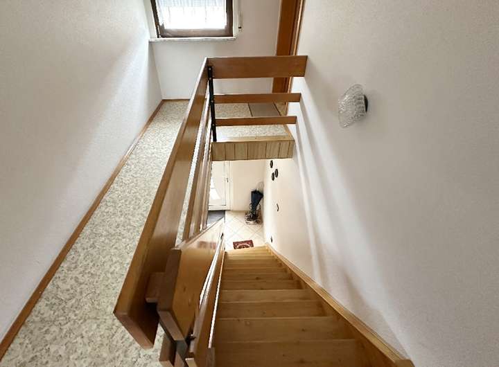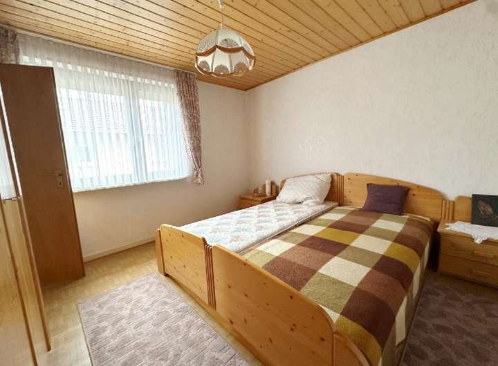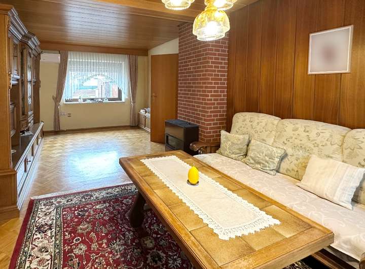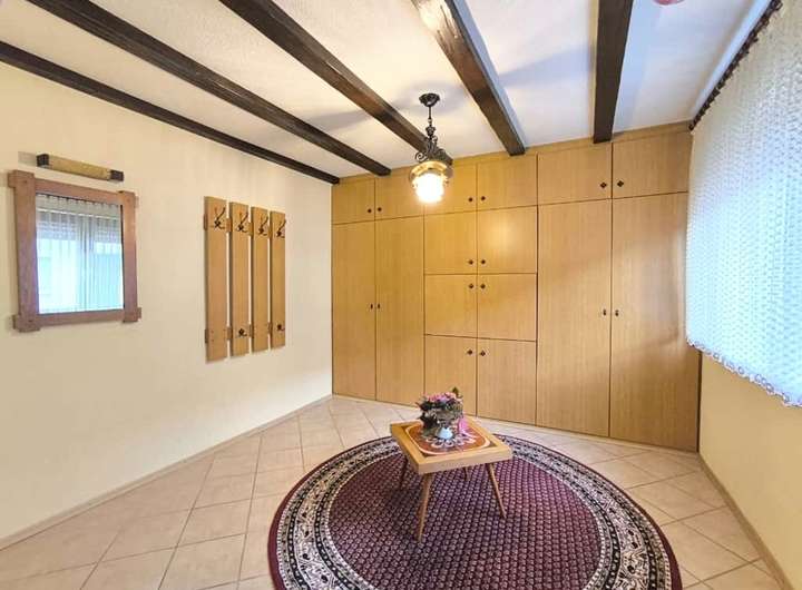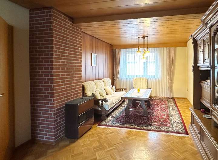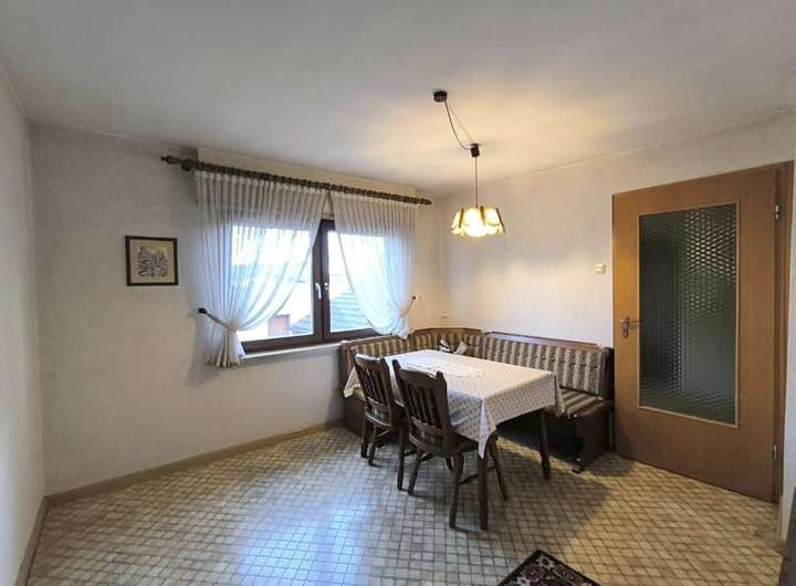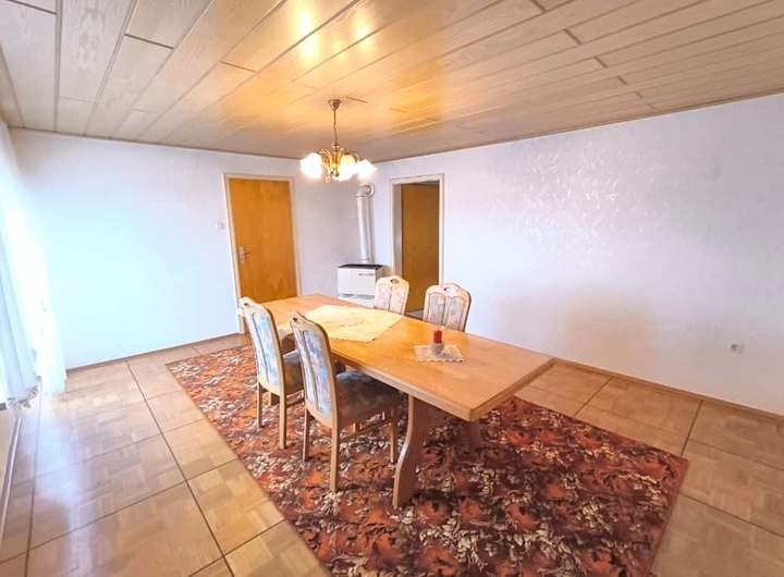 Das Haus ist gepflegt, jedoch nicht mehr zeitgemäß ausgestattet. Öl-Einzelöfen, einfache Bäder und ältere Fenster spiegeln den Stand einer verlässlichen, aber in die Jahre gekommenen Bausubstanz wider – eine gute Grundlage für individuelle Modernisierungsschritte. Die Raumaufteilung folgt dem klassischen Konzept eines Zweifamilienhauses: Im Erd- und Obergeschoss befinden sich jeweils Küche, Wohnzimmer, Schlafzimmer und Bad. So lassen sich gemeinsames und eigenständiges Wohnen flexibel verbinden. Im Erdgeschoss sorgt eine Klimaanlage im Wohnzimmer und im Obergeschoss eine im Flur für angenehme Temperaturen.