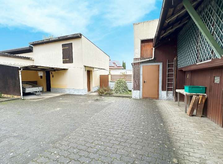 Das großzügige Grundstück ist klar strukturiert. Eine Hofdurchfahrt führt in den geschützten Innenhof, von dem aus die Nebengebäude erreichbar sind. Die ehemaligen Stallungen und Wirtschaftsräume eröffnen vielfältige Nutzungsmöglichkeiten – etwa als Werkstatt, Atelier, Lager oder erweiterte Wohn- oder Arbeitsfläche. Hinter dem Wohnhaus liegt ein weitläufiger Garten mit sonnigen Bereichen und Platz für Freizeit, Familie oder Selbstversorgung.