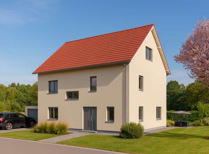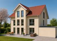Dieses repräsentative Satteldachhaus mit Erker überzeugt durch klare Formen, große Fensterflächen und ein helles, offenes Wohnkonzept. Zwei Vollgeschosse und ein ausgebautes Dachgeschoss bieten großzügige 258 m² Wohnfläche – ideal für Familien mit Platzanspruch. Das Erdgeschoss öffnet sich mit einem weitläufigen Wohn-/Ess- und Kochbereich, bodentiefen Fenstern und direktem Zugang zur Sonnenterrasse. Im Dachgeschoss entsteht durch die offene Galerie ein besonders luftiges Raumgefühl.