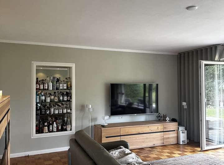 Das Haus erstreckt sich über zwei Etagen und verfügt über eine attraktive Raumaufteilung mit 4,5 Zimmern. Der offene Küchenbereich mit modernen Einbauküche (2014) und der Parkettboden im Wohnzimmer schaffen eine angenehme Wohnatmosphäre. Zur Ausstattung gehören ein Badezimmer mit ebenerdiger Dusche sowie ein separates Gäste-WC.