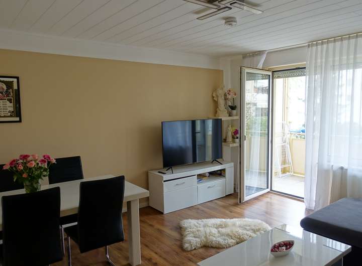 Auf dem Balkon (Richtung Südwest) mit elektrischer Markise lässt es sich wunderbar vom Alltagsstress erholen. Die Wohnung verfügt über einen Flur, eine Küche, ein Tageslichtbad, ein großzügiges Wohnzimmer sowie zwei Schlafzimmer. Sämtliche Zimmer verfügen über Rollläden. Ein Keller mit ausreichend Staufläche gehört ebenso zur Wohnung. Für die Gemeinschaft steht ein Wasch- und Trockenraum im Keller zur Verfügung.