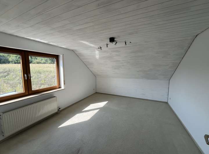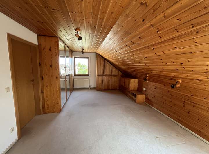 3 (Schlaf-) Zimmer, Bad mit Badewanne, Dusche, WC, Doppelwaschtisch und Zugang zu einem kleinen Dachbalkon, ein großes Ankleidezimmer (sehr groß mit Fenster, daher andere Nutzung, denkbar), Flur, weiteres Bad für Gäste oder die Kinder mit Dusche, WC und Waschbecken.