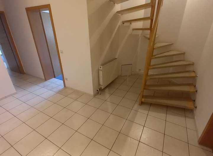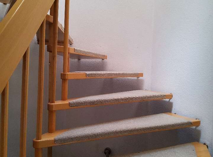 Eine offene Holztreppe verbindet UG und EG.