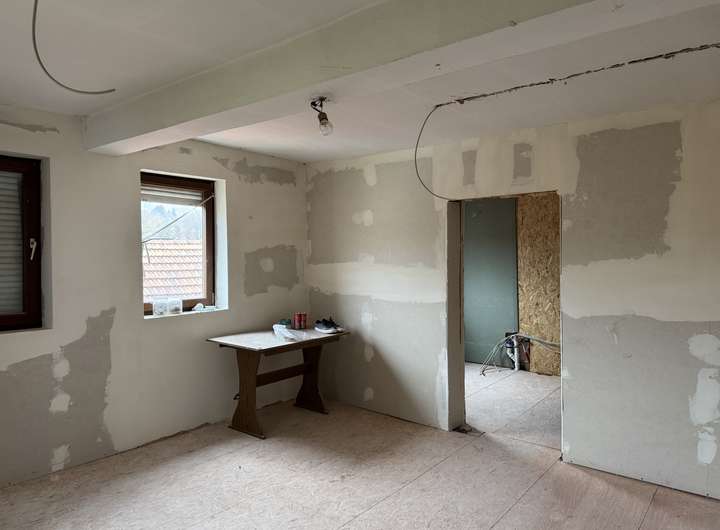 Zum Verkauf steht ein Einfamilienhaus mit separater Einliegerwohnung auf einem Grundstück von 115 m² in ruhiger und naturnaher Lage. Die Wohnfläche beträgt ca. 125 m² und verteilt sich auf Erdgeschoss, Untergeschoss sowie einen Dachboden mit Potenzial zum Ausbau, der zusätzlichen Raum für individuelle Gestaltung bietet. Das Haus befindet sich noch in der Bauphase und eröffnet künftigen Eigentümern die Möglichkeit, den Innenausbau nach eigenen Vorstellungen zu realisieren. Das Erdgeschoss umfasst ca. 83 m² Wohnfläche mit einem großzügigen Wohn- und Essbereich, einer Küche, einem Schlafzimmer, einem Kinderzimmer sowie einem Badezimmer – ideal für Familien, die offenen und funktionalen Wohnraum schätzen. Im Untergeschoss stehen ca. 35 m² Wohnfläche zur Verfügung, darunter ein weiterer großer Wohn- und Essbereich, eine Küche, ein Schlafzimmer und ein Badezimmer. Zusätzlich bietet das Untergeschoss ca. 26 m² Nutzfläche, einen Heizungsraum, einen Abstellraum sowie einen Gewölbekeller, die vielseitige Nutzungsmöglichkeiten eröffnen. Das Haus überzeugt durch seine moderne technische Ausstattung: Die Elektrik wurde vollständig neu verlegt, die Sanitäranlagen sind komplett modernisiert, eine neue Gasheizung sowie Heizkörper sind bereits vorhanden, müssen jedoch noch angeschlossen werden. Im Untergeschoss wurden neue Fenster mit 2-Fach-Verglasung eingebaut, und das Objekt verfügt über zwei neue Eingangstüren. Das Dach wurde vollständig erneuert, sodass das Haus auf einem soliden und hochwertigen Stand ist. Dank der flexiblen Raumaufteilung, modernen Ausstattung und individuellen Gestaltungsmöglichkeiten bietet dieses Objekt die perfekte Grundlage für ein Zuhause, das genau auf die Wünsche seiner neuen Eigentümer zugeschnitten werden kann.