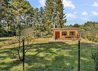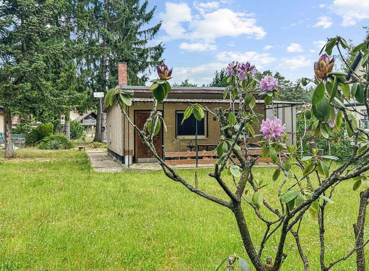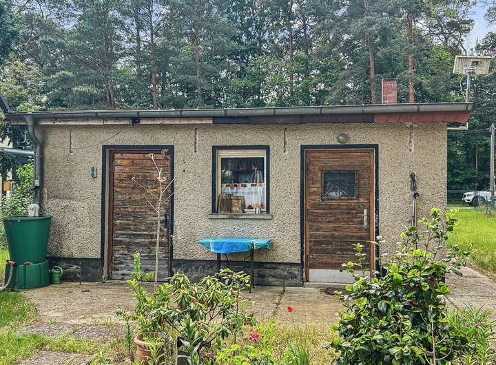 Auf dem vorderen Grundstücksteil befindet sich noch ein Freizeitbungalow mit zwei Zimmern, Küche und Bad. Auf der anschließenden Terrasse können Sie gemütlich grillen. Ein Glasfaseranschluss der Telekom liegt im Bungalow an.