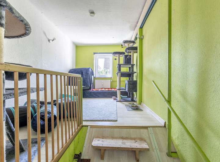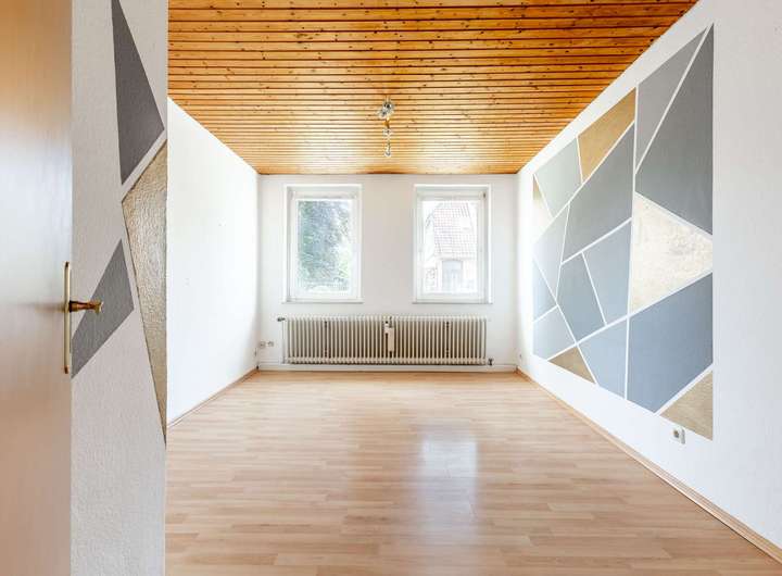- Wohnung Nr. 1 (Erdgeschoss links, ca. 95 m²) – renovierungsbedürftig, jedoch mit erheblichem Potenzial. Nach einer Modernisierung ist eine marktübliche Kaltmiete von ca. 10 €/m² realistisch, was einer monatlichen Mieteinnahme von rund 950 € entspricht.