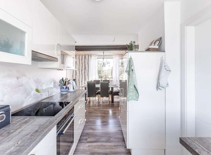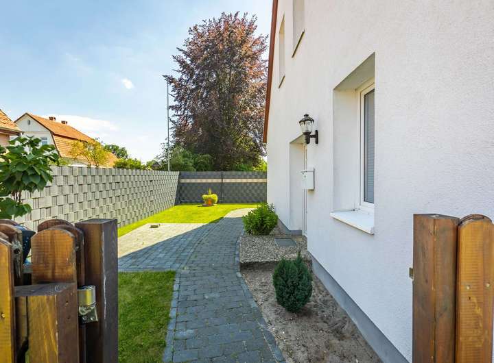 Von der Küche aus gelangt man direkt in den Garten, der zu entspannten Sommerabenden im Freien einlädt. Das Badezimmer ist mit einer Badewanne, einem Fenster für Tageslicht und einem Waschmaschinenanschluss ausgestattet.