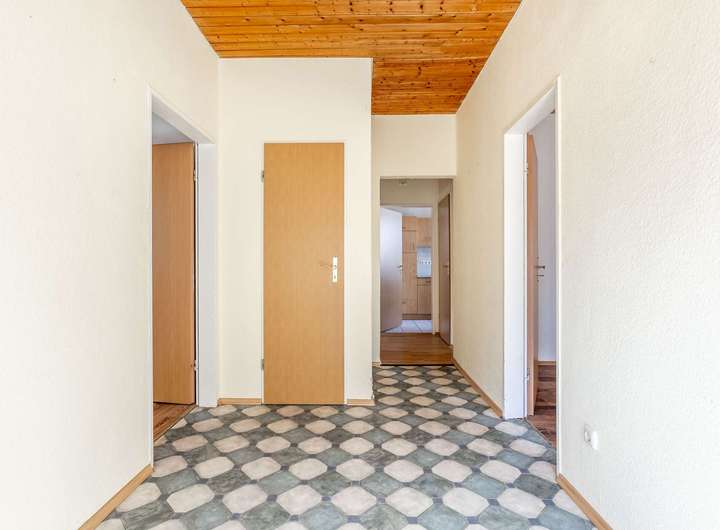 - Wohnung Nr. 2 (Erdgeschoss rechts, ca. 55 m²) – frisch gestrichen in gutem vermietbaren Zustand. Eine Kaltmiete von etwa 550 € ist hier möglich.