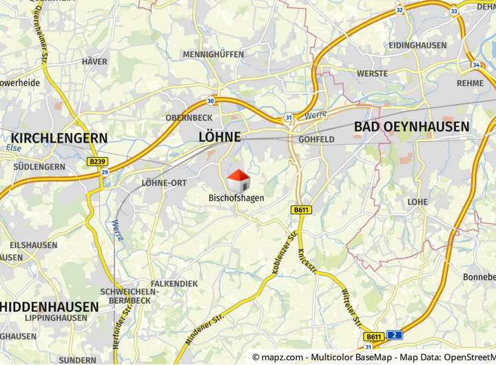 Das Grundstück liegt in einer ruhigen Sackgasse innerhalb eines Wohngebiets, bietet jedoch gleichzeitig eine zentrale Lage. Einkaufsmöglichkeiten, zahlreiche Restaurants und weitere Ziele des täglichen Bedarfs sind schnell erreichbar. In nur wenigen Autominuten gelangt man zur B611 und A30, wodurch die umliegenden Städte bequem erreichbar sind.