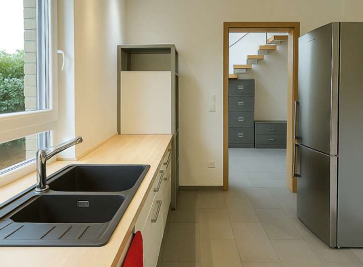 Die Einbauküche und die Badmöbel gehören zum Haus und sind im Kaufpreis enthalten.