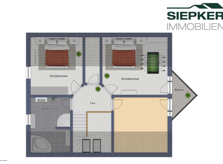 Im Obergeschoß sind die Schlafräume mit Laminat ausgelegt.
