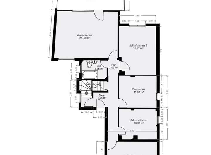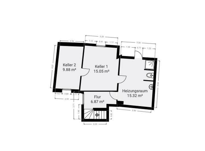 Kellergeschoss: Zwei Kellerräume, Heizungsraum und Flur