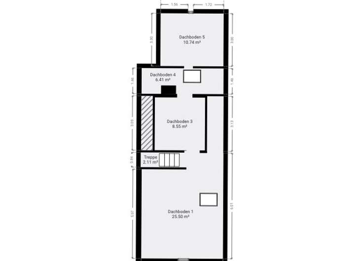 Dachgeschoss: Drei Dachbodenräume mit zusätzlichem Ausbaupotenzial