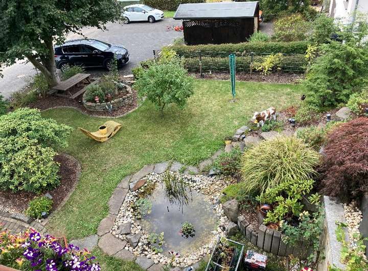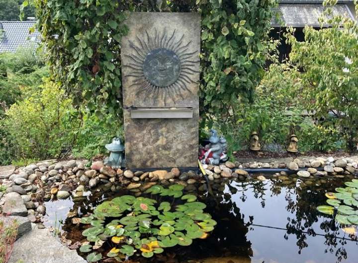 Die Parkanlage am Hang sind mit künstlichen Wasserspielen und Wasserfällen sowie 2 Mini Teichen und Pumpensystem wurden neu installiert.