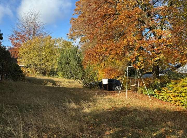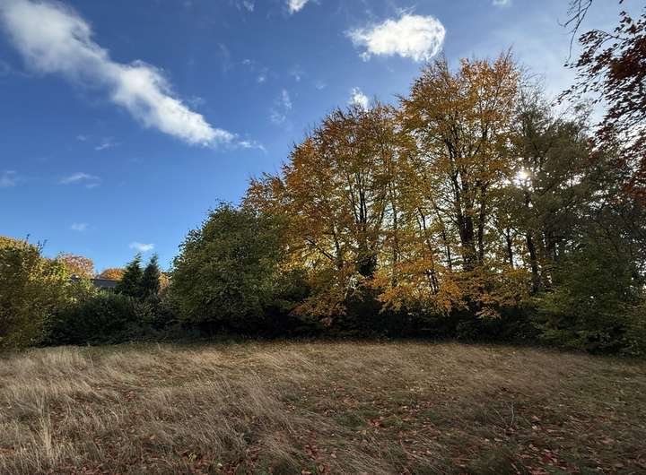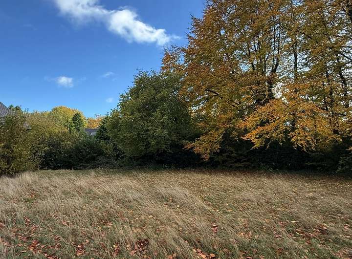 Das Grundstück ist über 60 Meter tief und weist eine leichte Hanglage auf, die eine wunderschöne Aussicht in den tiefer liegenden Wald ermöglicht – ideal für ein Einfamilienhaus.