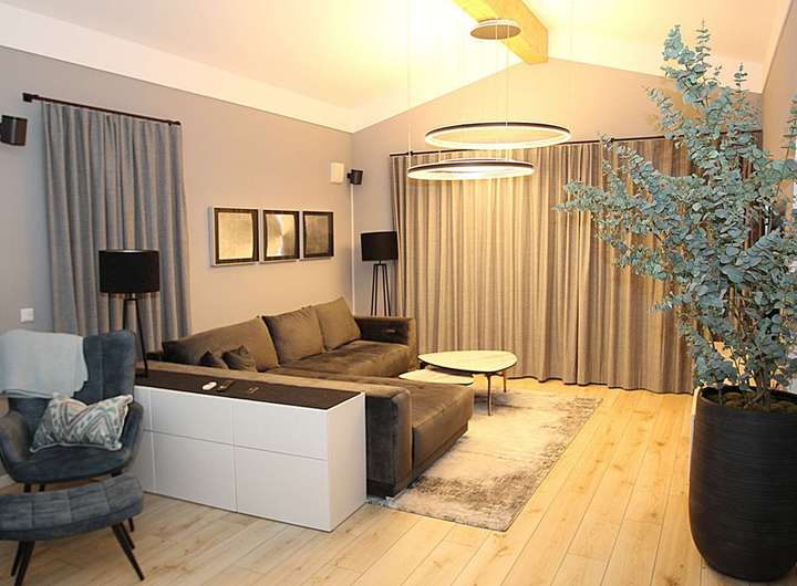 Das gesamte Haus hat eine moderne Beleuchtungsanlage, die darauf ausgelegt ist, die Lichtverhältnisse in den Wohnräumen jederzeit individuell an die jeweiligen Bedürfnisse und Stimmungen der Bewohner anzupassen.